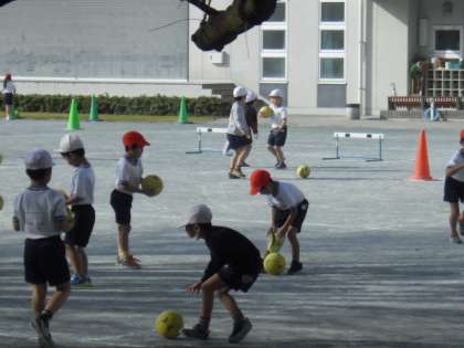 ボールゲームに向けて、ボールを操作する練習が始まりました。