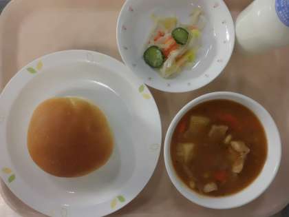 ミルクパン・牛乳・ビーンズシチュー・白菜のサラダ