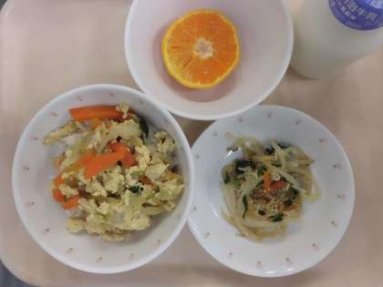 親子丼・牛乳・しらすと小松菜のあえもの・菊花みかん