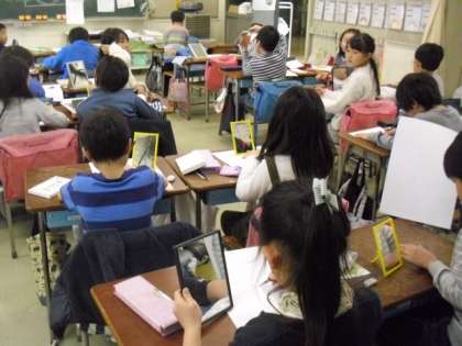 マフラーを巻いたぼく・わたしの顔をかく学習です。