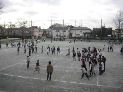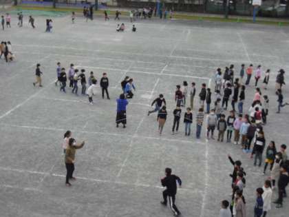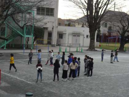 みんなで声をかけあいながら、長縄を何回とべるかチャレンジです。
