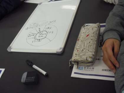 渡しがのぞいたグループでは、カレーができるまでの手順を考え、時間配分し、カレー作り時計の制作にトライしていました〜