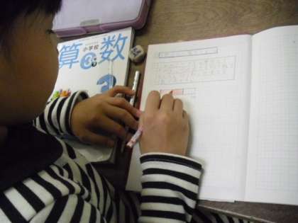 分数の問題に挑戦しながら、分数についての学習事項の確認をしているところでした。