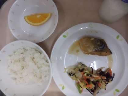 ごはん・牛乳・さばのみそ煮・野菜の香味あえ・スイートスプリング