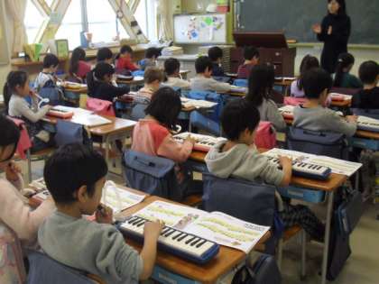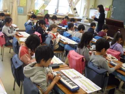 指遣いに気を付けながら、鍵盤ハーモニカのおけいこです。