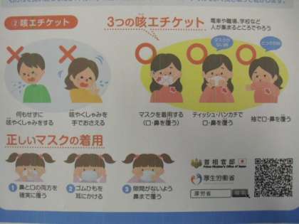 感染症対策の基本、「手洗い」「咳エチケット」について、ご家庭でもご確認ください。