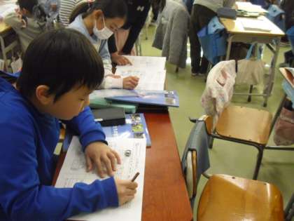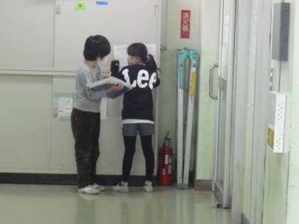 3年生が社会の 学習で、校内にある消防設備について、調査を開始しました〜
