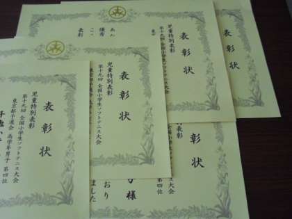 さまざまな活動で頑張った子どもたちに表彰状をいただきました。