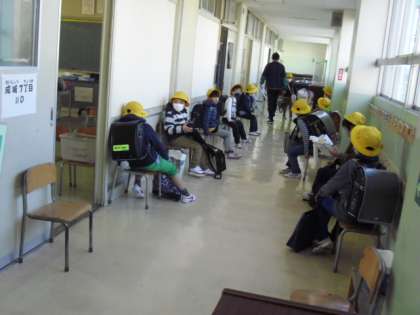 9時、9時半、10時、10時半、11時、11時半、12時、12時半と登校する学年やクラス、グループを決めての登校になっています。