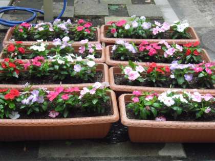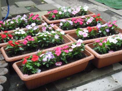 新1年生の入学をお祝いして、会場に飾る花をプランターに植えました。
