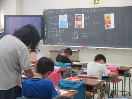 理科では植物の観察の仕方を学習しています。学校の花壇に植えてあるひまわりの芽も大きくなってきました。算数では、時刻と時間の問題に真剣に取り組んでいます。