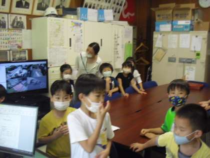 1年生が学校探検で,職員室、校長室、給食室などを見学にきました〜
