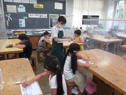 今日は「図工プロフィール」にキャラクターや、やってみたいことなどを記入しました。