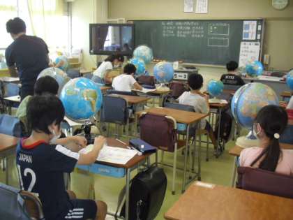 資料や地球儀を使って、国土の位置や構成、領土の範囲などについて理解を深めていました〜