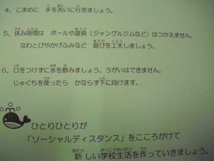それぞれの学級でも、クラスの皆との出会いを大切にするとともに、感染予防に向けての新たな生活のきまりについて、確認し合う機会を設定します。