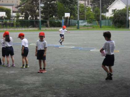 輪を使ってのけんぱにみんなで挑戦しました〜