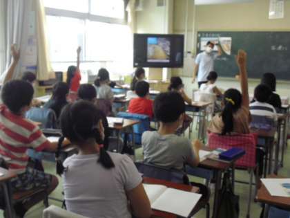 大雨の回数、浸水被害のグラフをもとに、疑問や予想を出し合って、解決していく学習問題にしていきました。