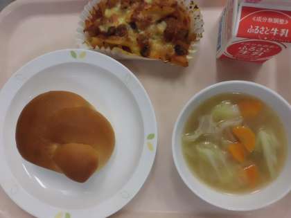ミルクパン・牛乳・なすのグラタン・野菜スープ