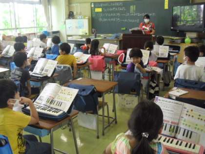 けんばんハーモニカの、「ど」と、「そ」の場所をメロディーをたどって覚えていきました〜
