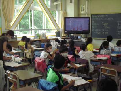 1めもりがいくつを表しているのかに注意しながら、棒グラフの読み方について学習しています・・・・