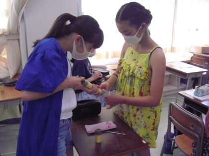空気中と、呼吸をした後の酸素、二酸化炭素の割合を測定・・・