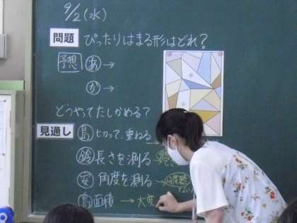 ぴったりはまる形をみどのように見つければよいのか見通しを立てて・・・