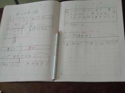 たし算やひき算の問題の求める数を□個としてテープ図に表す学習です。