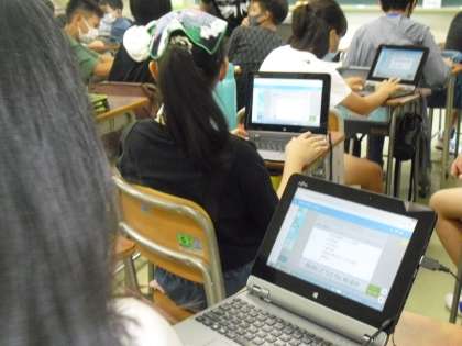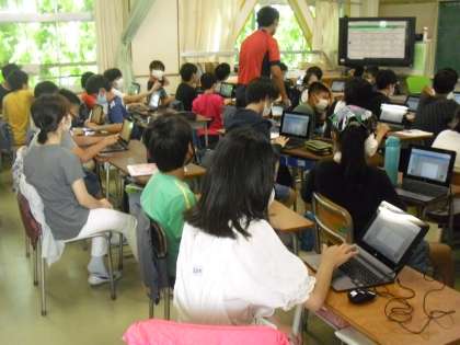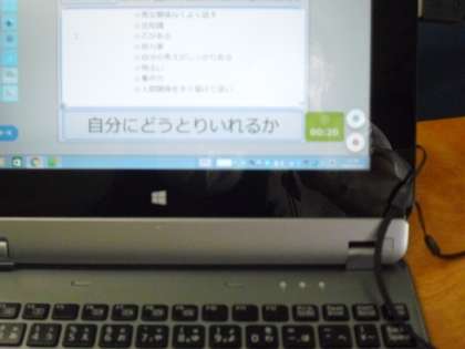 パソコンを使って、他の友達が見つけた友達のよいところを交流しあい、