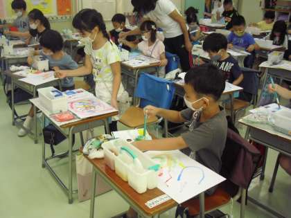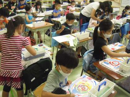 図工で絵の具を使っての学習です。