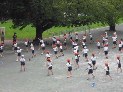 体育学習発表会の表現の練習に向けて、校庭でも活動開始です〜