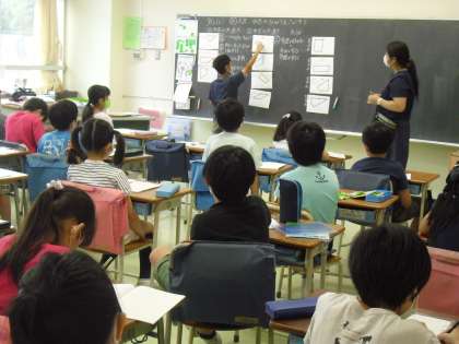 図の中にあるいろいろな四角形を見つけ、、平行な辺に着目して仲間に分ける学習です。