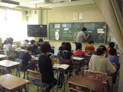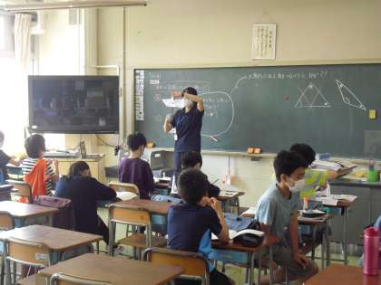 三角形の3つの角を集める活動を通して、内角の和が180°であることに付いての学習です。