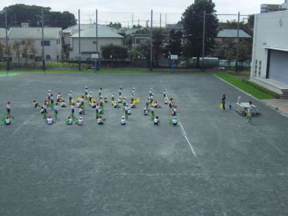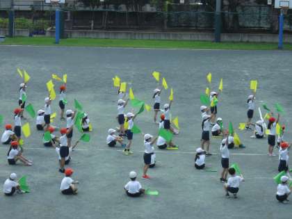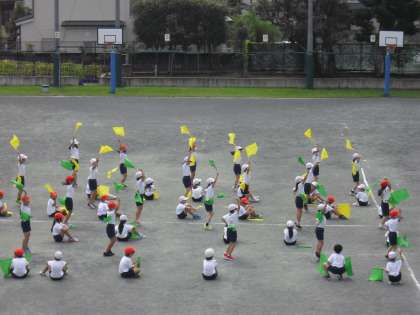 フラッグを使って大きな動作での動きの練習を、交代交代にしていました。