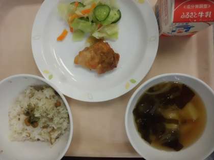 大豆とじゃこのごはん・牛乳・鶏肉のオニオン焼き・野菜の甘酢かけ