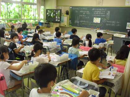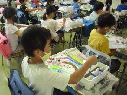 自分で考え、白い画用紙にいろいろないろでたくさんの線をかいていました・・・・