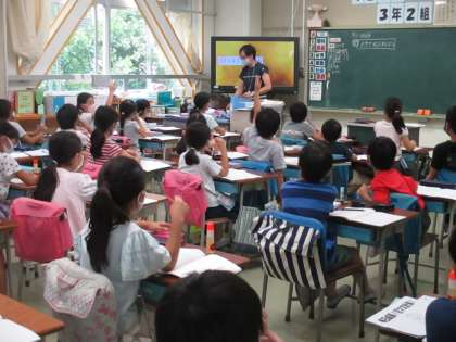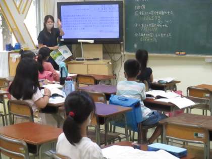 3年生の算数では、少人数に分かれて、大きな数の大小を比べる学習をしました。どの位に着目して比べると良いか、考えることが出来ました。