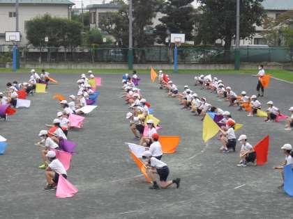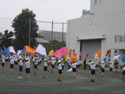 フラッグを風になびかせ、練習が進んでいました・・・