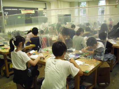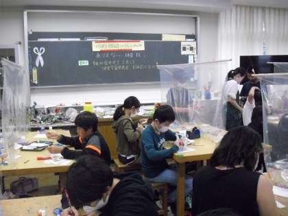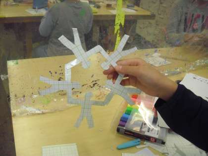 図工室では、あり得ない体育技を考え、人型をつなげて・・・・