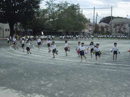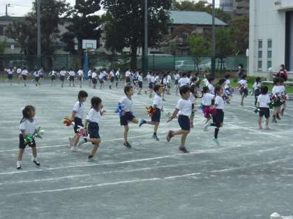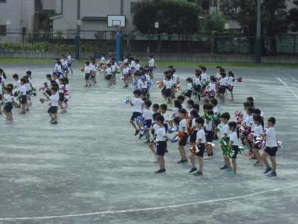 ぽんぽんを手に、楽しくおどる1年生です・・・・