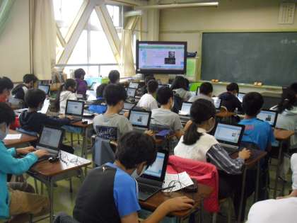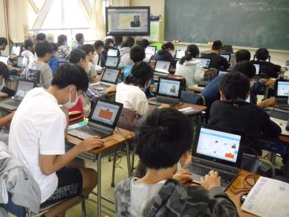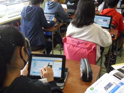 各自が調べたことをもとに、タブレットパソコンを使って情報共有〜