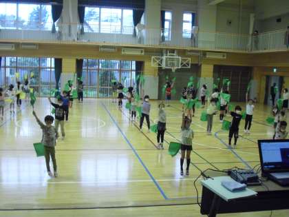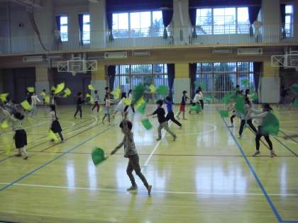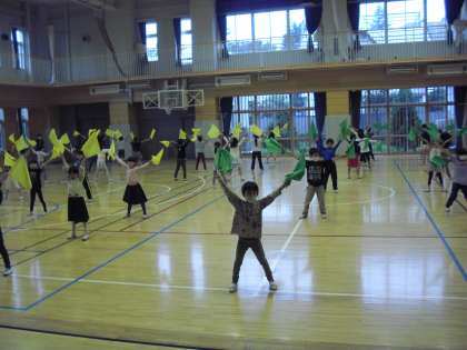 旗を大きくふって、元気におどる千歳せっこたちです・・・・
