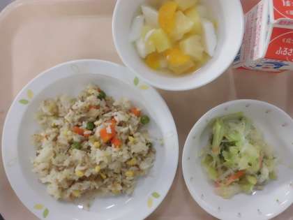チャーハン・牛乳・バンサンスー・杏仁豆腐