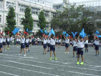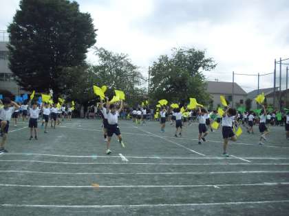 旗を元気に振り上げ・・・