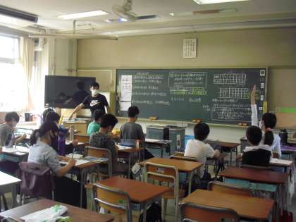 比例する2つの数量の関係について、表を用いて変化や対応の規則性を考察する学習です。