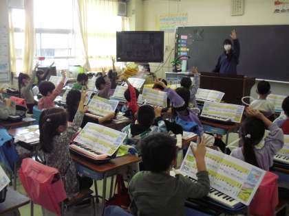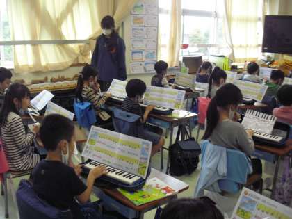 指遣いに気を付けて、鍵盤ハーモニカのお稽古が始まりました〜