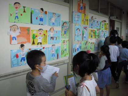 みんなで踊った体育学習発表会のワンシーンを図工の時間に描きました。