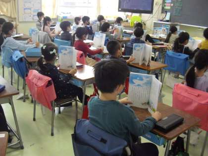 大きな声は出せませんが、マスクをしながら気持ちを込めて読んでいました〜