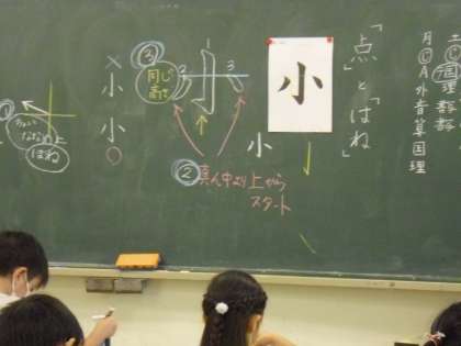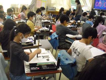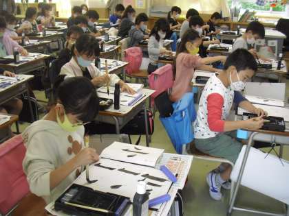 「点」と「はね」に気を付けながら、毛筆のおけいこです。