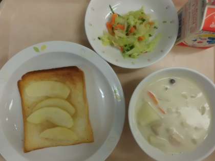 アップルトースト・牛乳・秋のクリームシチュー・野菜サラダ