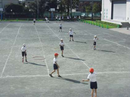 校庭では3年生のベースボール型ゲームの学習が始まりました〜